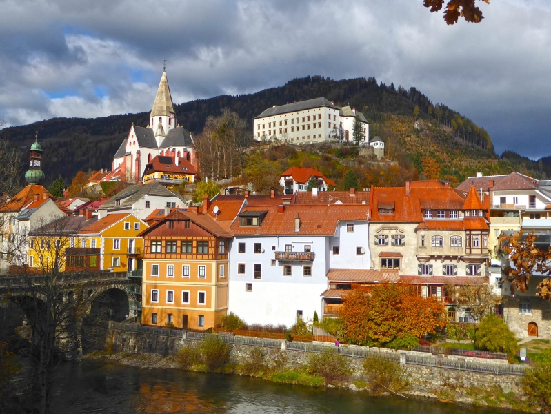 Für den Abstieg vom Frauenalpen-Gipfel gehen wir vorerst an der nahen Bernhard-Fest-Hütte (Selbstversorgerhütte des ÖAV) vorbei, folgen dem aussichtsreichen Fahrweg bergab zur Käsereihütte und von dort der ehemaligen Schipiste zur Murauer Hütte, wo wir uns mit einer guten Einkehr belohnen dürfen. Unmittelbar östlich der Murauer Hütte (bzw. der Bergrettungsdiensthütte) beginnt der Wanderweg, der durchwegs sehr gut ausgeschildert und markiert, mehrmals die Straße querend hinab nach Murau führt. Nach ca. einer Stunde sehen wir vor uns die gotische St. Leonhard-Kirche, worauf in wenigen Minuten über die Straße das Zentrum der reizenden Stadt Murau erreicht ist. Vor der Murbrücke ist rechter Hand das Ende unserer Wanderung, der Bahnhof Murau, zu erkennen.