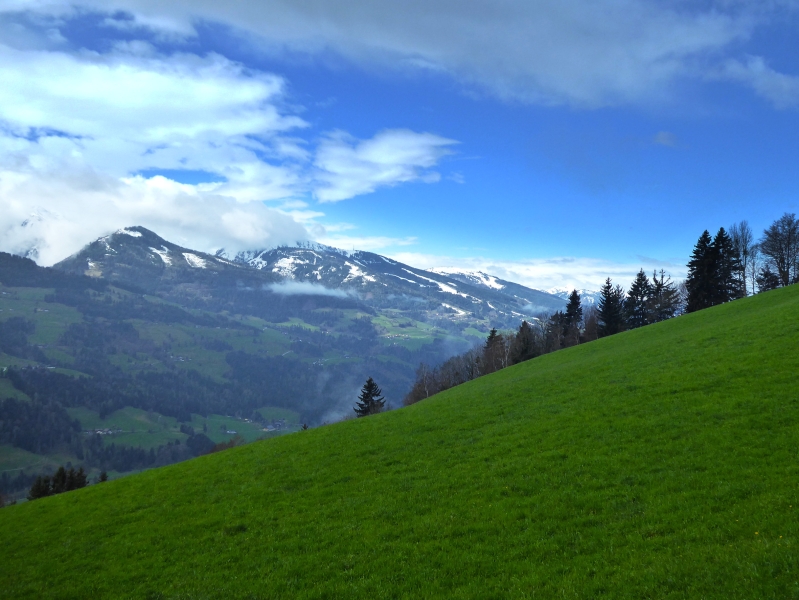 Von der Assacher Scharte geht’s geradeaus weiter ein paar Meter entlang der Forststraße, um dann in den „Wandersteig nach Assach“ (Wegweiser) einzufädeln. Entlang dieses bequemen Wanderweges können wir, mehrmals eine Forststraße querend, zügig bergabschreiten, bis wir die Asphaltstraße erreichen, über die es in das Kirchdorf Assach geht. Von Assach ist es dann entlang der Straße mit Gehsteig nicht mehr weit nach Aich, wo mit der Bahnstation Aich-Assach, auf der Südseite der Enns gelegen, der Endpunkt unserer Wanderung erreicht wird.