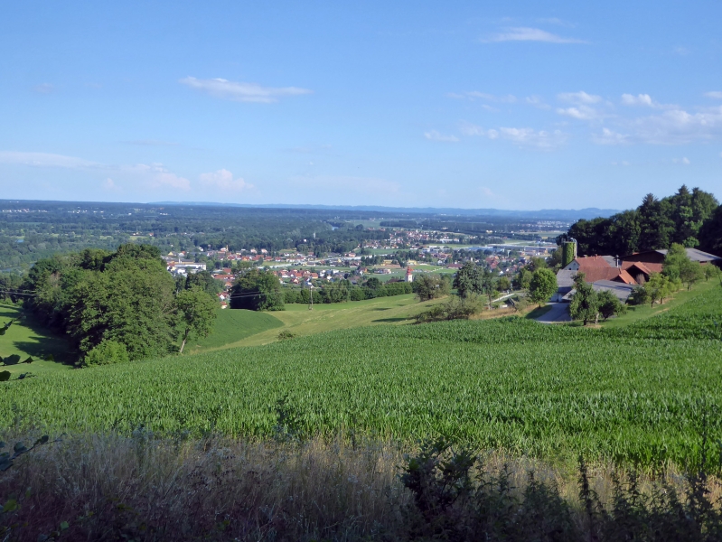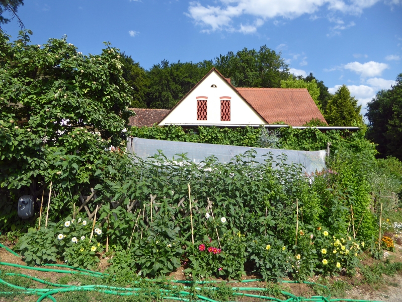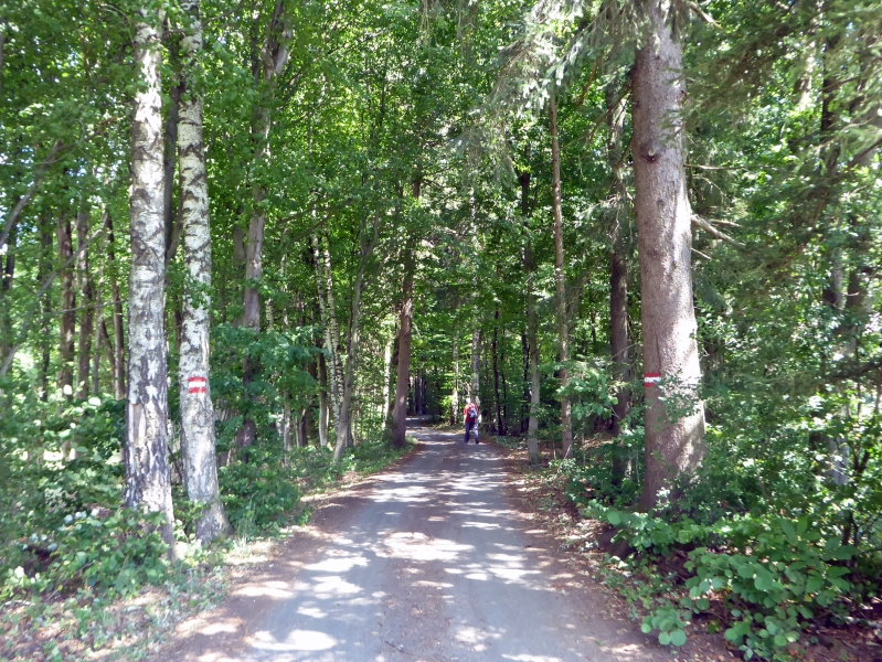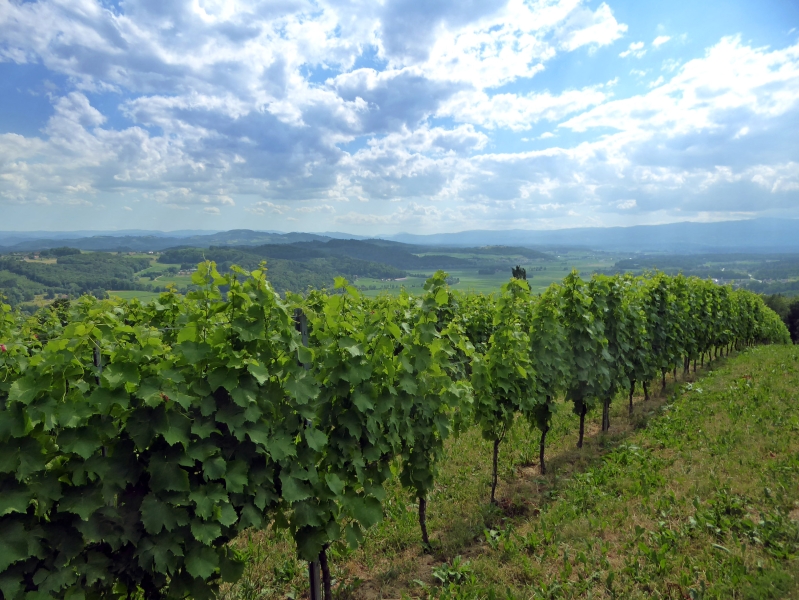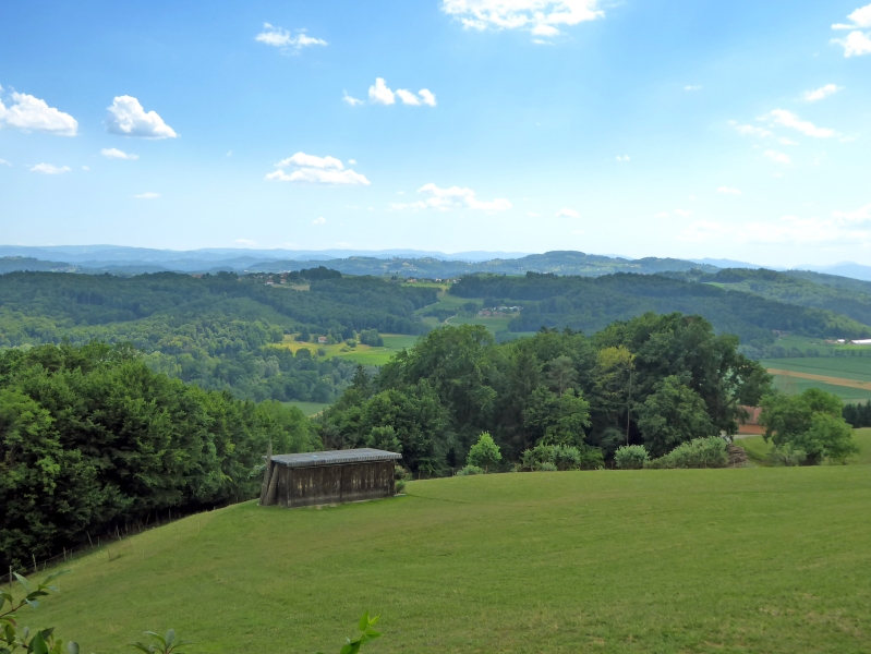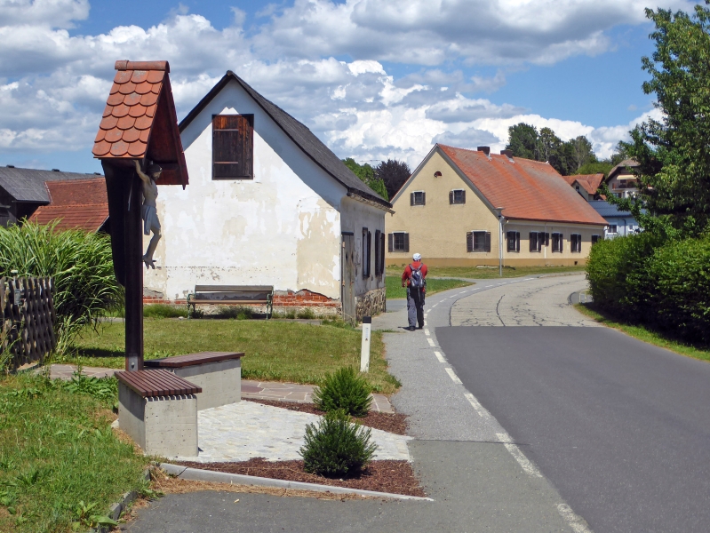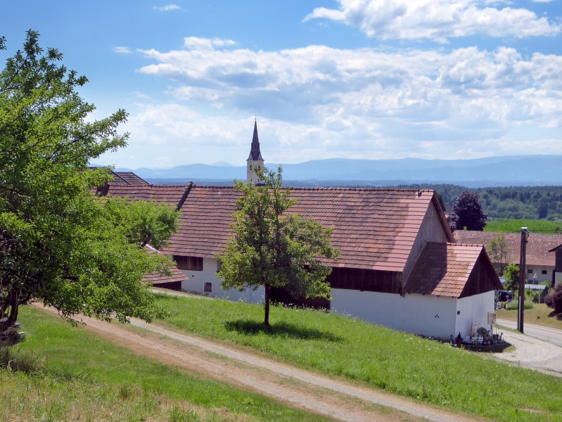 Wir starten beim Bahnhof Hengsberg, der Ende Dezember 2010 im Rahmen der Koralmbahn eröffnet wurde und der die Gemeinde mehr oder weniger aus ihrem ÖV-mäßigen toten Winkel herausgeholt hat. Nach der Querung der stark befahrenen Landesstraße L 601 folgen wir der Ortszufahrt – immer der rot-weiß-roten Markierung des „Kulturpark Hengist Kultur-Wanderweges“ folgend – in das hübsche Ortszentrum von Hengsberg. Dort wenden wir uns nach rechts und sehen vor uns den Kirchenwirt (rechts) und die interessante, besuchenswerte Pfarrkirche zum Hl. Laurentius (links), von deren Vorplatz sich bei entsprechendem Wetter auch schöne Blick zur Koralpe und sogar zur Uršlja gora ergeben. Vom Ortszentrum wandern wir entlang der Straße Richtung Nordosten und gelangen durch ein Streusiedlungsgebiet zur Straßenkreuzung in Komberg, wo wir uns nach rechts wenden. Ein paar Minuten später verlassen wir das Straßerl und durchqueren – immer geradeaus den Markierungen nach – einen schönen Mischwald. Kurz vor der Landesstraße über den Kehlsberg biegen wir scharf rechts ab (Wegweiser), um wenig später linkerhand wieder die Landesstraße L 601 zu queren. Bald erreichen wir, der Markierung folgend, die Annakapelle oberhalb von Kehlsdorf und in weiterer Folge die Brücke über die Pyhrn-Autobahn. Nun geht‘s zügig bergan, bald an den ersten Weinbergen vorbei, bis wir vor dem Buschenschank Bockmoar stehen.